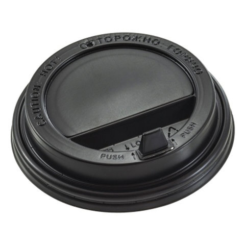 Одноразовые крышки для стакана 300 мл (d-90), КОМПЛЕКТ 100 шт., клапан-носик, черные, ФОРМАЦИЯ, CH-90FB-A