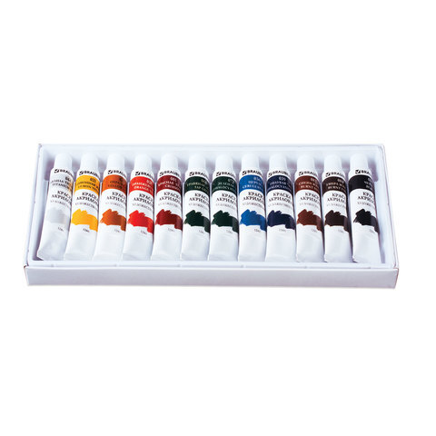 Краски акриловые художественные BRAUBERG ART DEBUT, НАБОР 12 цветов по 12 мл, в тубах, 191125