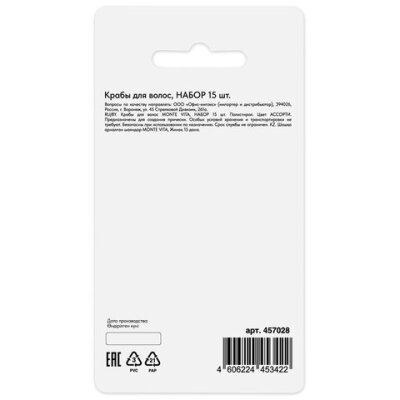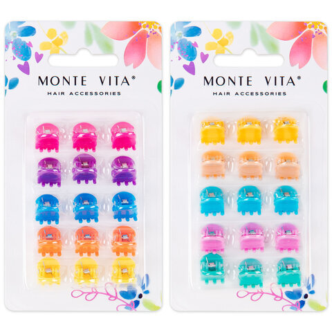 Крабы для волос НАБОР 15 шт., 0,8 см, глянцевый, АССОРТИ, MONTE VITA (МОНТЕ ВИТА), 457028