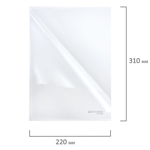 Папка-уголок А4, прозрачная, 0,10 мм, BRAUBERG EXTRA, 271698