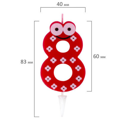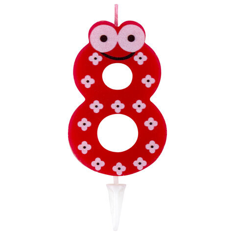 Свечи для торта являются неотъемлемым атрибутом праздника. Свеча-цифра для торта "8" "С глазками" ЗОЛОТАЯ СКАЗКА станет прекрасным украшением торта и других кондитерских изделий по случаю детского дня рождения.