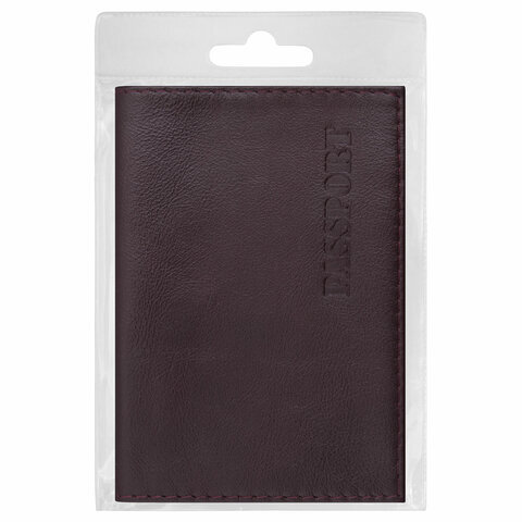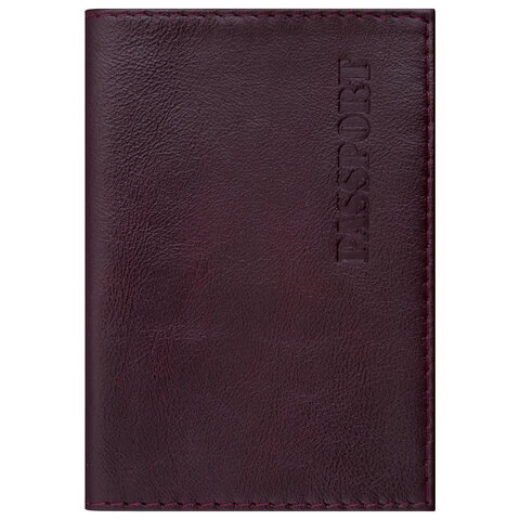 Обложка для паспорта натуральная кожа "Virginia", "PASSPORT", бордовая, BRAUBERG, 237187