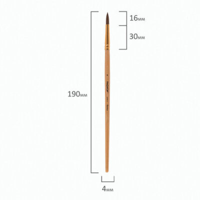 Кисть ПИФАГОР № 4 подходит для работы с акварелью, гуашью, тушью, а также для прорисовывания различных деталей рисунка. Снабжена защитным пластиковым колпачком.