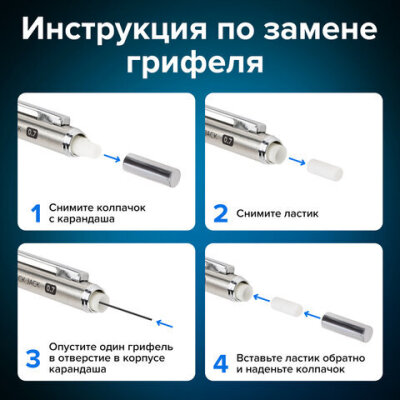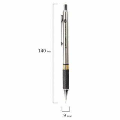 Высококачественный механический карандаш BRAUBERG "Black Jack" с металлическим корпусом черного цвета и удобным резиновым упором, исключающим скольжение пальцев во время письма.
