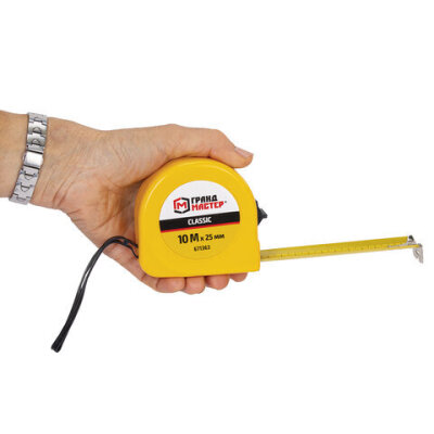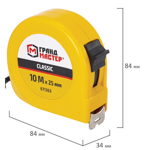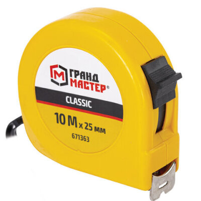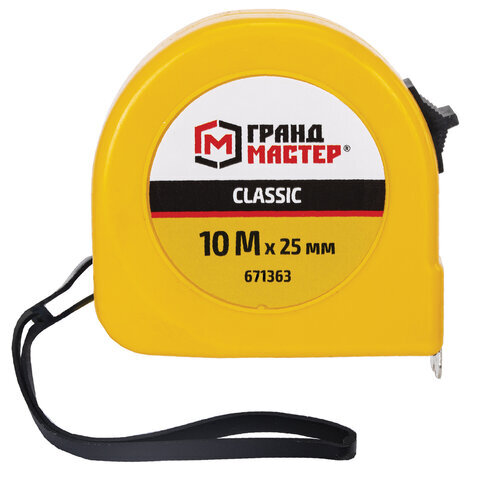 Рулетка измерительная 10 м х 25 мм, пластиковый корпус, с фиксатором, ГРАНДМАСТЕР Classic, 671363