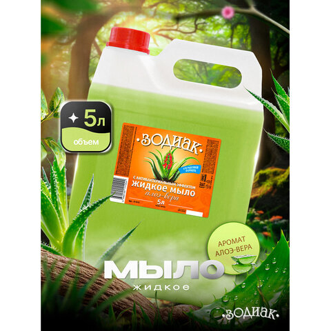 Мыло жидкое 5 л, ЗОДИАК, антибактериальное, "Алоэ-вера", К10-5
