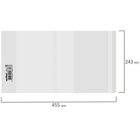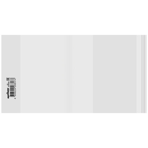 Обложка ПП со штрихкодом для тетрадей, прописей Горецкого, КЛЕЙКИЙ КРАЙ, 80 мкм, 243х455 мм, универсальная, прозрачная, ЮНЛАНДИЯ, 229353