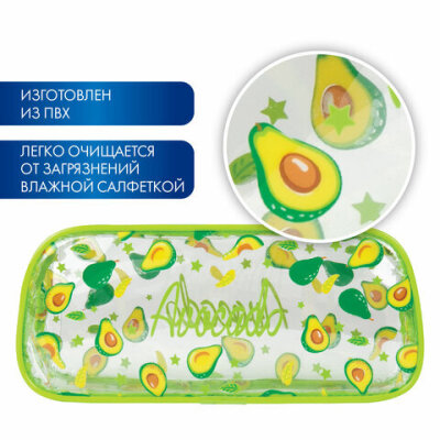 Пенал-косметичка BRAUBERG LUCENT на молнии, прозрачный, "Avocado", 21х5х9 см, 270054