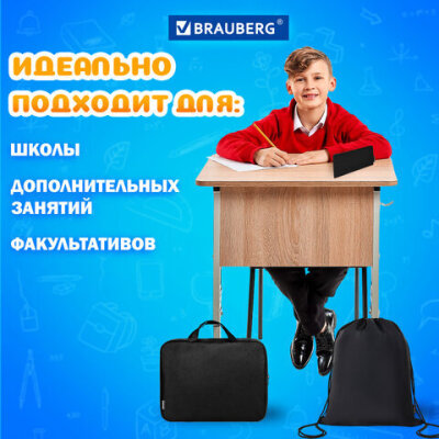 Папка на молнии с ручками А4, мешок для обуви 42х33 см, пенал 20х10 см, черный, НАБОР BRAUBERG, 273288