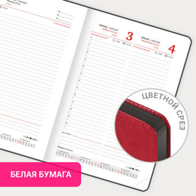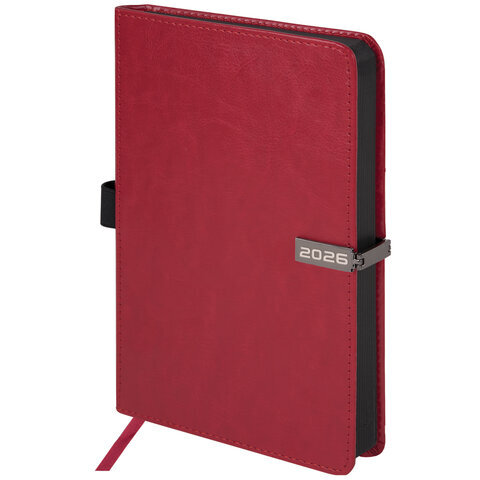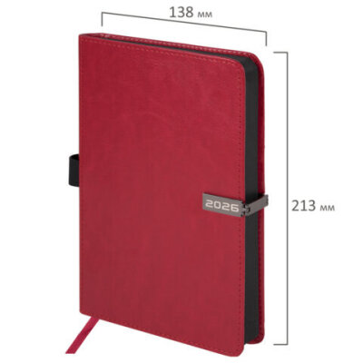 Ежедневник датированный 2026 А5 138x213 мм, BRAUBERG "Inspiration", под кожу, цветной срез, красный, 117475