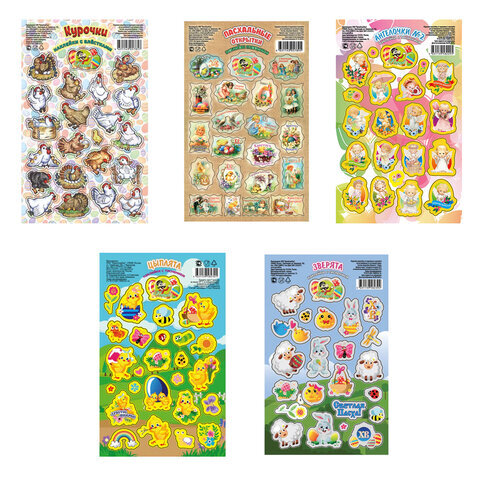 Наклейки пасхальные, "Весенние радости", дизайны ассорти, 0675, 0676, 0684, 0689, 0673