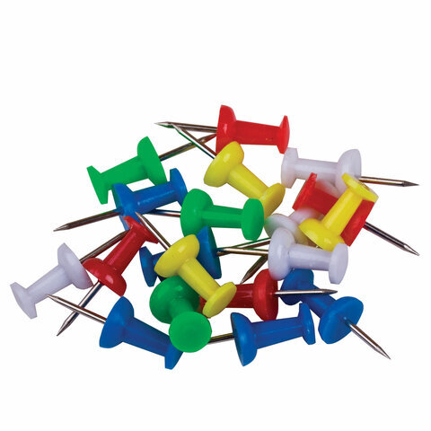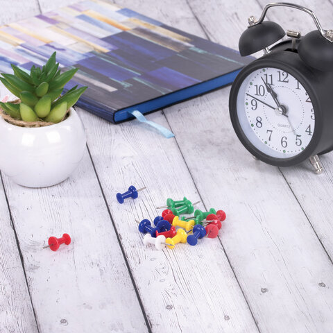 Силовые кнопки-гвоздики ОФИСНАЯ ПЛАНЕТА, цветные, 50 шт., в картонной коробке, 222003