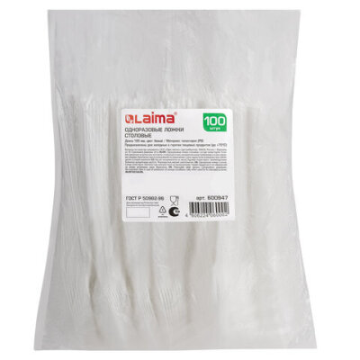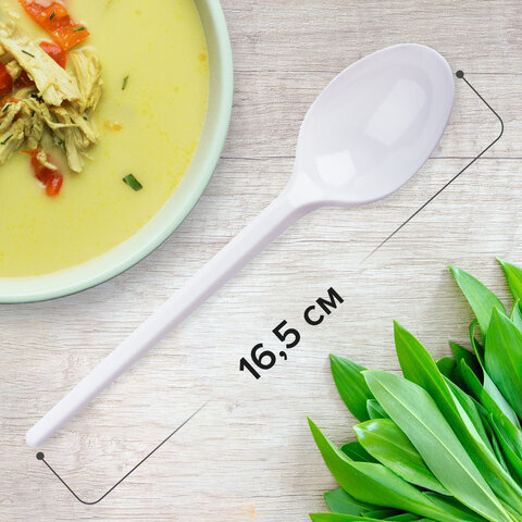 Ложка столовая одноразовая пластиковая 165 мм, белая, КОМПЛЕКТ 100 шт., БЮДЖЕТ, LAIMA, 600947