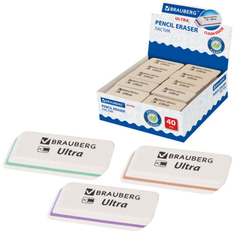 Ластик BRAUBERG "Ultra" предназначен для удаления надписей, сделанных чернографитным карандашом.