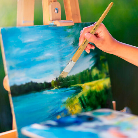 Кисть BRAUBERG № 18 подходит для работы с гуашью, акрилом, маслом, темперой, а также для прорисовывания различных деталей рисунка. Снабжена защитным пластиковым колпачком.