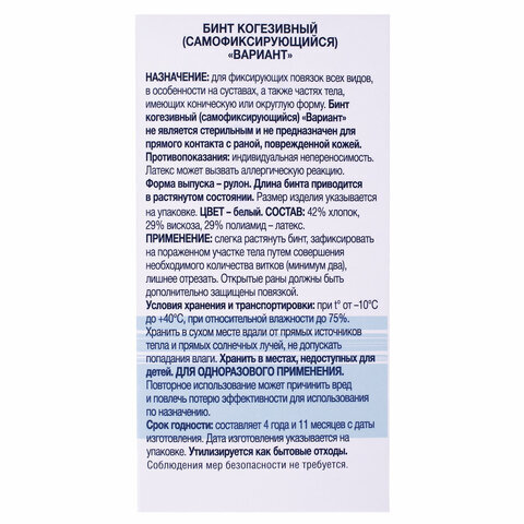 Самофиксирующийся эластичный бинт «ВАРИАНТ» – удобный современный перевязочный материал, который обеспечивает надежную фиксацию на длительный срок и позволяет накладывать повязку практически не создавая давления на травмированный участок кожи.