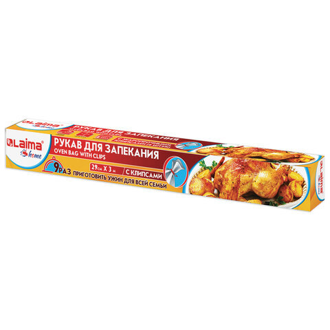 Рукав для запекания с клипсами, 29 см х 3 м, LAIMA, 607806