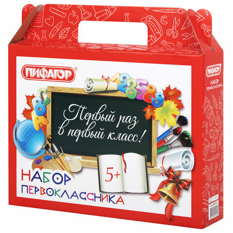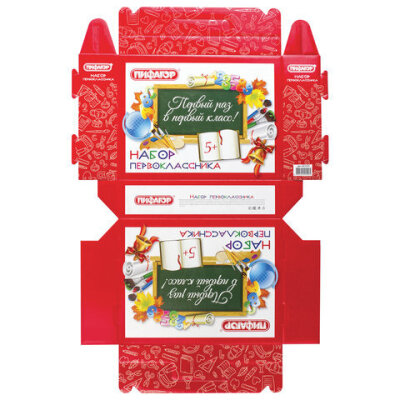 Подарочный короб ПИФАГОР позволяет красиво оформить необходимые первокласснику письменные и канцелярские принадлежности. Состав набора можно сформировать самостоятельно в зависимости от требований учебных заведений или собственных предпочтений.