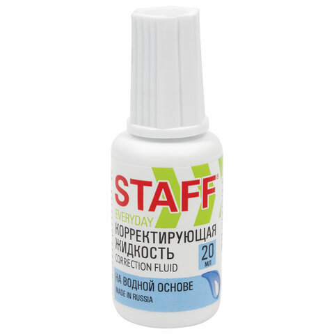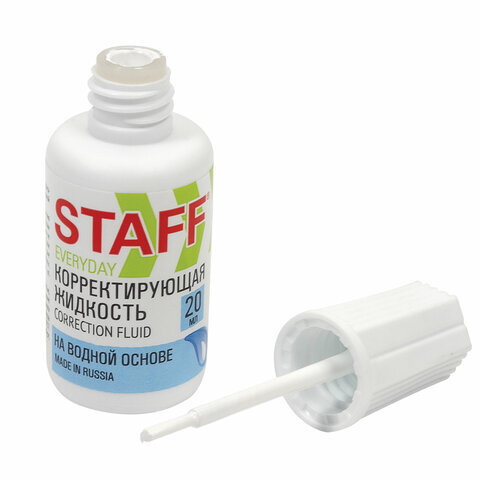 Корректирующая жидкость STAFF "EVERYDAY" на водной основе, 20 мл, с кисточкой, Россия, 220835