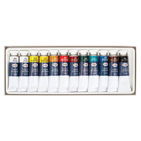Краски масляные художественные ГАММА "Студия", НАБОР 10 цветов по 9 мл + 2 белых цвета, в тубах, 203007
