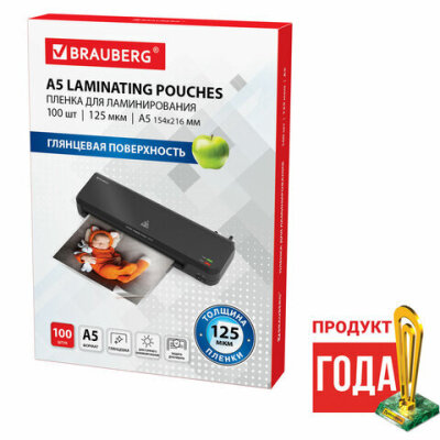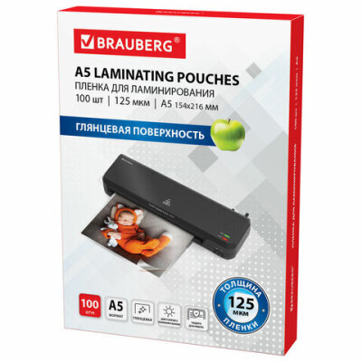 Пленки-заготовки для ламинирования МАЛОГО ФОРМАТА, А5, КОМПЛЕКТ 100 шт., 125 мкм, BRAUBERG, 530899