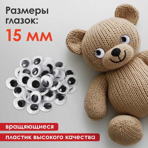 Глазки для творчества пришивные, вращающиеся, черно-белые, 15 мм, 20 шт., ОСТРОВ СОКРОВИЩ, 661383