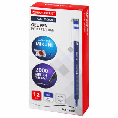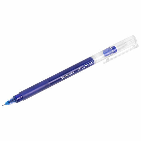 Ручка гелевая BRAUBERG "GL-2000", СИНЯЯ, японские чернила, длина письма 2000 метров, линия письма 0,35 мм, 144218