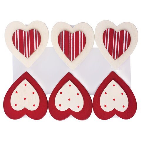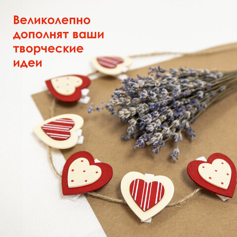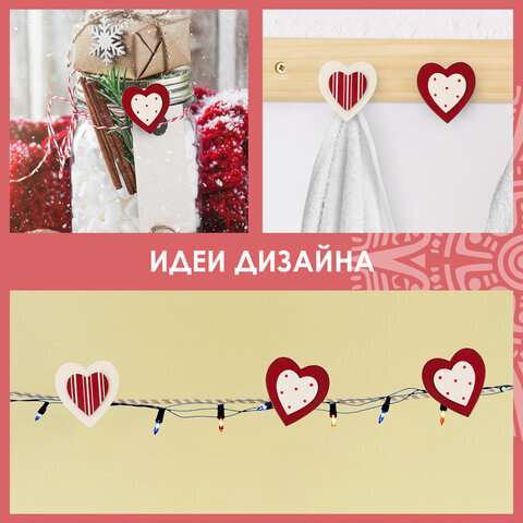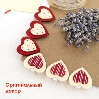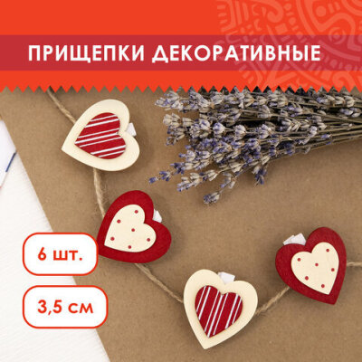 Прищепки декоративные "Сердце с узором", 6 штук, 3,5 см, ассорти, ОСТРОВ СОКРОВИЩ, 661292