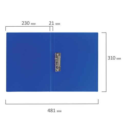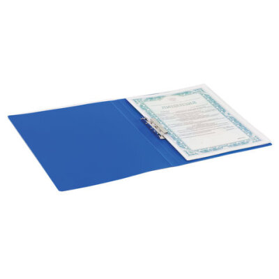 Папка с боковым металлическим прижимом BRAUBERG стандарт, синяя, до 100 листов, 0,6 мм, 221629