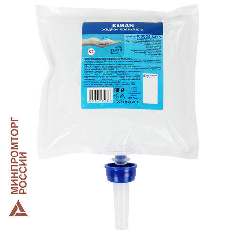 Картридж с жидким крем-мылом (Система S2) "Перламутровое", белое, 0,475 л, KEMAN, 100024-S475
