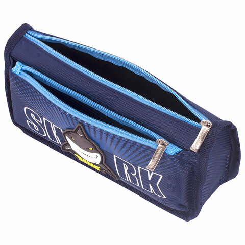 Пенал мягкий ЮНЛАНДИЯ, 2 отделения, полиэстер, "Shark", синий, 21х6х9 см, 270272
