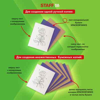 Копировальная бумага STAFF предназначена для письма вручную, хобби и творчества.