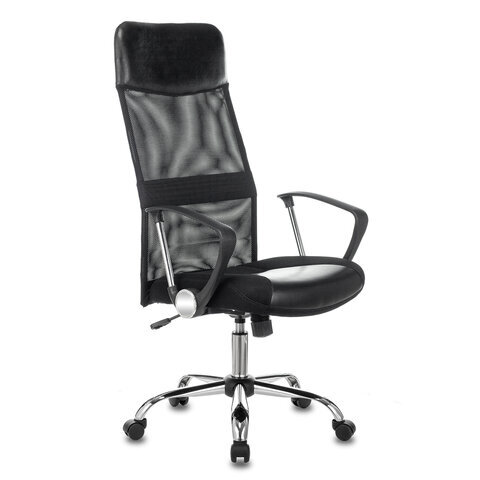 Кресло офисное CH-600SL, хром, ткань-сетка/кожзам, черное, 1380230