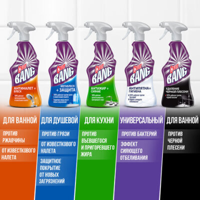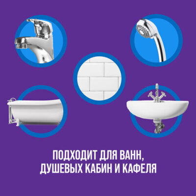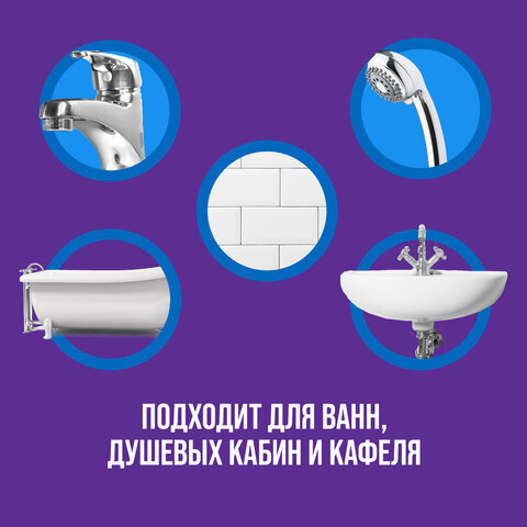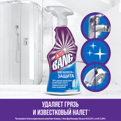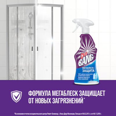CILLIT BANG "Мегаблеск и Защита" эффективно удаляет грязь, мыльные разводы, и известковый налет. Компоненты, входящие в состав средства, создают невидимое защитное покрытие, которое предотвращает появление новых загрязнений уже после первого применения.