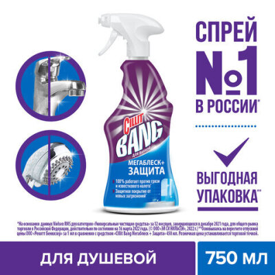 Чистящее средство 750 мл CILLIT BANG (Силлит Бэнг) "Мегаблеск и защита", универсал, распылитель, 3083474