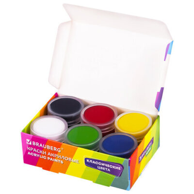 Краски акриловые для рисования и творчества 6 цветов по 10 мл, BRAUBERG HOBBY, 192432