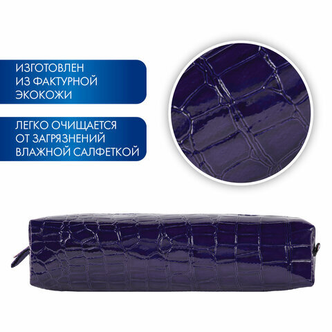 Пенал-косметичка BRAUBERG, "крокодиловая кожа", 20х6х4 см, "Ultra purple", 270848