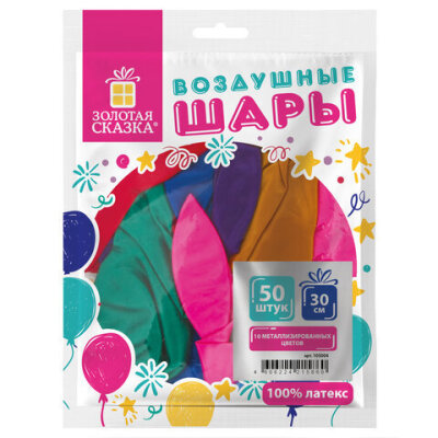 Шары воздушные ЗОЛОТАЯ СКАЗКА, 12" (30 см), КОМПЛЕКТ 50 штук, металлик, ассорти 10 цветов, пакет, 105004