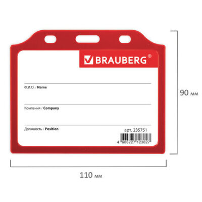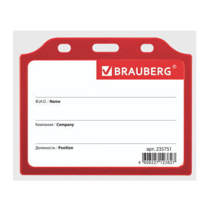 Горизонтальный бейдж BRAUBERG для именной карточки предназначен для идентификации сотрудников в компаниях, а также на семинарах, тренингах, презентациях и других мероприятиях.