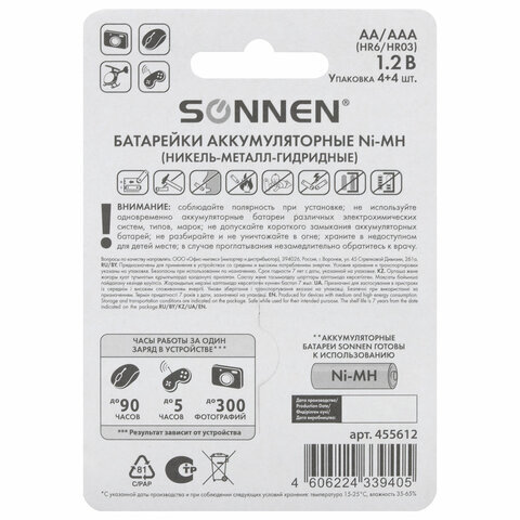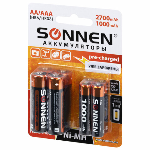 Аккумуляторы SONNEN AA 2700 мА·ч и AAА 1000 мА·ч являются универсальным решением. Элементы питания подойдут для применения в различной технике. Они уже заряжены и готовы к работе.