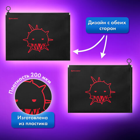 Папка для тетрадей BRAUBERG А4, 1 отделение, пластик, на zip-lock-молнии, "Danger", 272105
