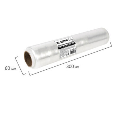 Пленка пищевая ПЭ 300 мм х 200 м, ГАРАНТИРОВАННАЯ ДЛИНА, 6 мкм, вес нетто 0,32 кг ±5%, LAIMA, 605037