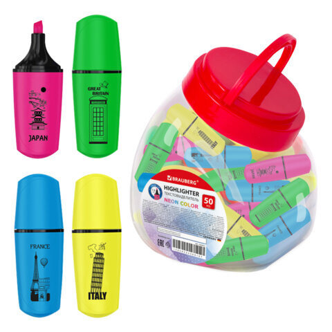 Текстовыделитель мини BRAUBERG "NEON Mini", АССОРТИ В ПЛАСТИКОВОЙ БАНКЕ, линия 1-5 мм, 152431