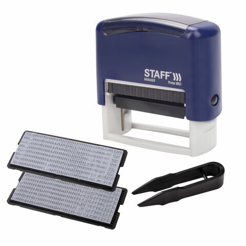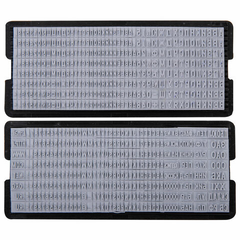 | В комплекте | две кассы шрифта, пинцет, штемпельная подушка |