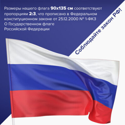 Флаг России 90х135 см без герба, ПРОЧНЫЙ с влагозащитной пропиткой, полиэфирный шелк, STAFF, 550225