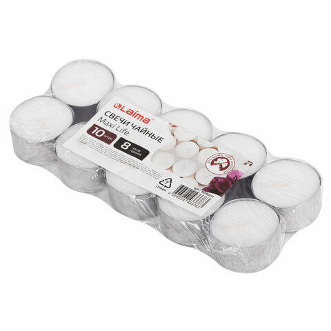 Свечи чайные Maxi Life, до 8 часов горения, вес 21 г, КОМПЛЕКТ 10шт., в гильзе, LAIMA, 609201