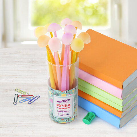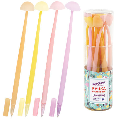 Ручка фигурная шариковая ЮНЛАНДИЯ "Гриб", силиконовый корпус, ассорти, СИНЯЯ, пишущий узел 0,7 мм, 143796