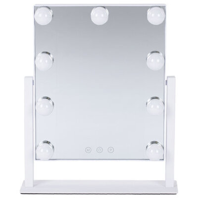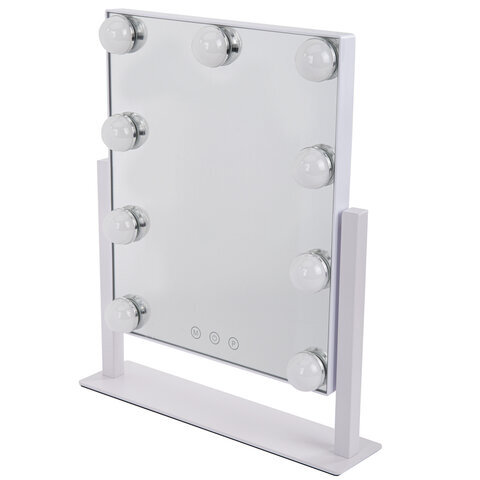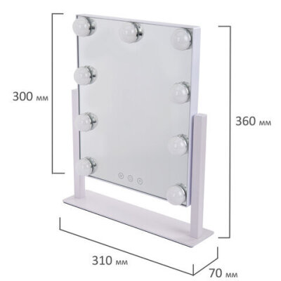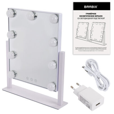Зеркало для макияжа гримерное с подсветкой, 9 LED-ламп, 3 режима свечения, размер 25х30 см, работа от сети 220 V, цвет белый, BRABIX, 609335