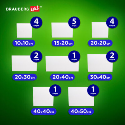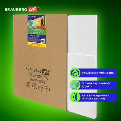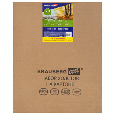Холсты на картоне НАБОР 20 штук, 280 г/м2, грунт, 100% хлопок, BRAUBERG ART CLASSIC, 192431