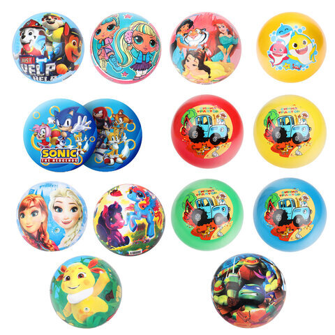 Мяч надувной полноцветный, лицензия, ПВХ, 23 см, АССОРТИ 10 видов, 665639